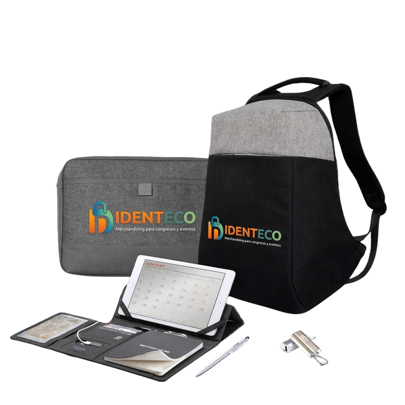 Nuestro catálogo incluye productos como carpetas, maletines, mochilas, artículos promocionales como memorias USB, bolígrafos, libretas o botellas termo, disponibles en stock o mediante fabricación a medida, con el objetivo de adaptarse plenamente a cada proyecto y contribuir al éxito de cada evento.