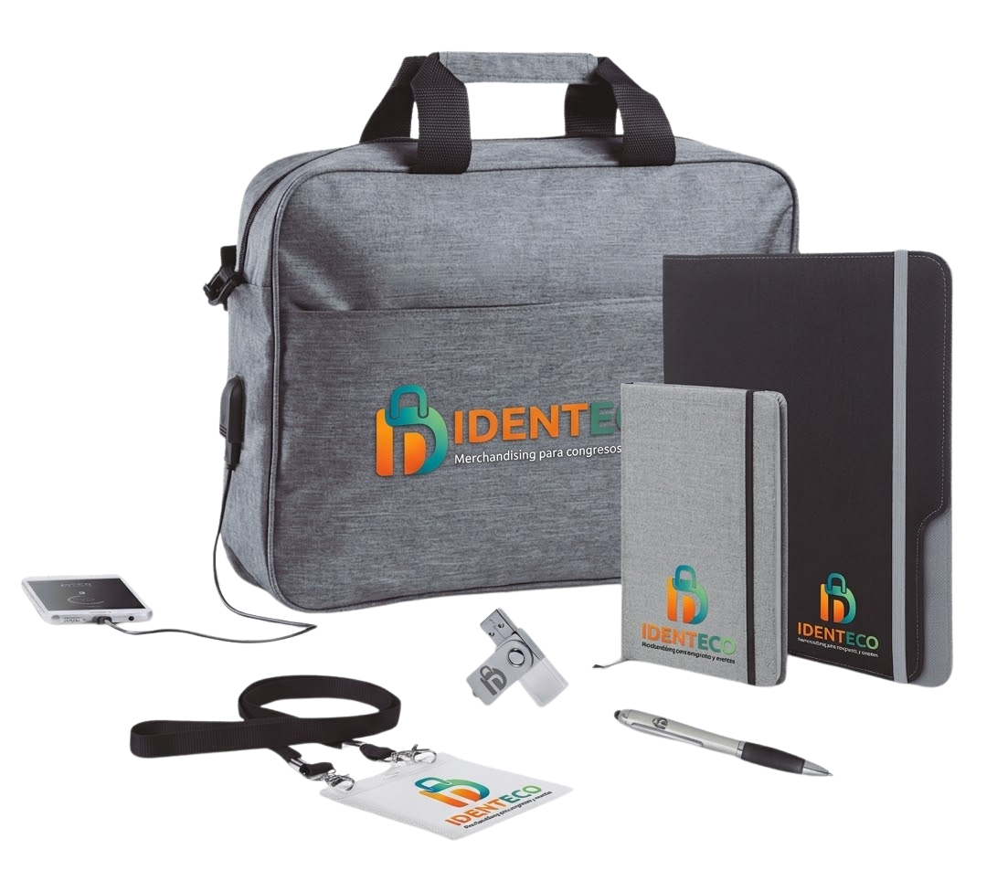 Nuestro catálogo incluye productos como carpetas, maletines, mochilas, bolsas tote de algodón, lanyards y artículos promocionales como memorias USB, bolígrafos, libretas o tazas, disponibles en stock o mediante fabricación a medida, con el objetivo de adaptarse plenamente a cada proyecto y contribuir al éxito de cada evento.
